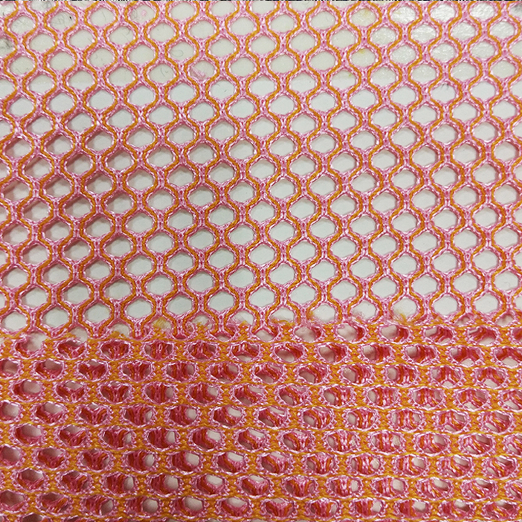 雙色網(wǎng)布,是一種雙針床經(jīng)編網(wǎng)布,由網(wǎng)孔表面,連接單絲,平布底面組成.因其立體網(wǎng)布的結(jié)構(gòu),正反兩面顏色