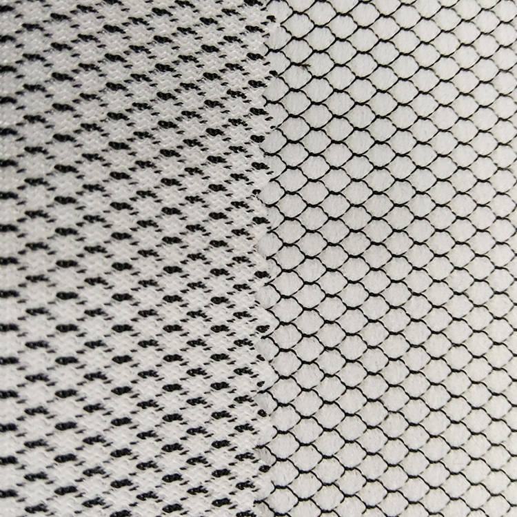 雙色網布,是一種雙針床經編網布,由網孔表面,連接單絲,平布底面組成.因其立體網布的結構,正反兩面顏色