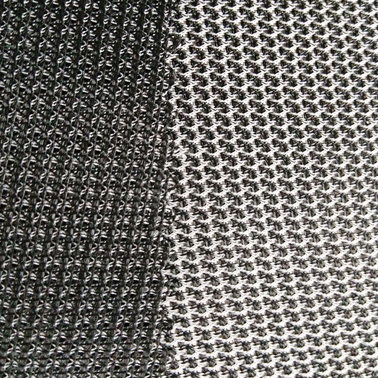 雙色網(wǎng)布,是一種雙針床經(jīng)編網(wǎng)布,由網(wǎng)孔表面,連接單絲,平布底面組成.因其立體網(wǎng)布的結(jié)構(gòu),正反兩面顏色