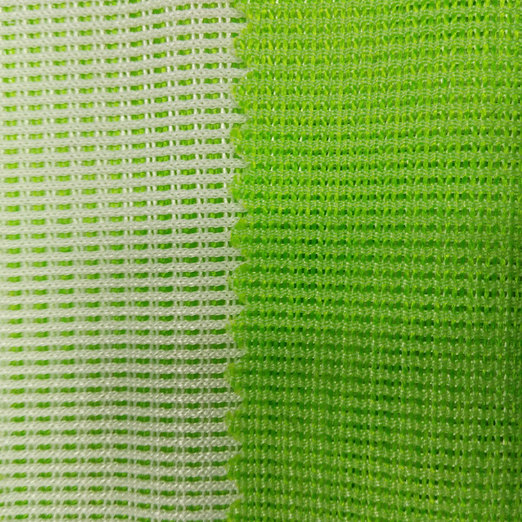 雙色網(wǎng)布,是一種雙針床經(jīng)編網(wǎng)布,由網(wǎng)孔表面,連接單絲,平布底面組成.因其立體網(wǎng)布的結(jié)構(gòu),正反兩面顏色