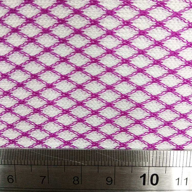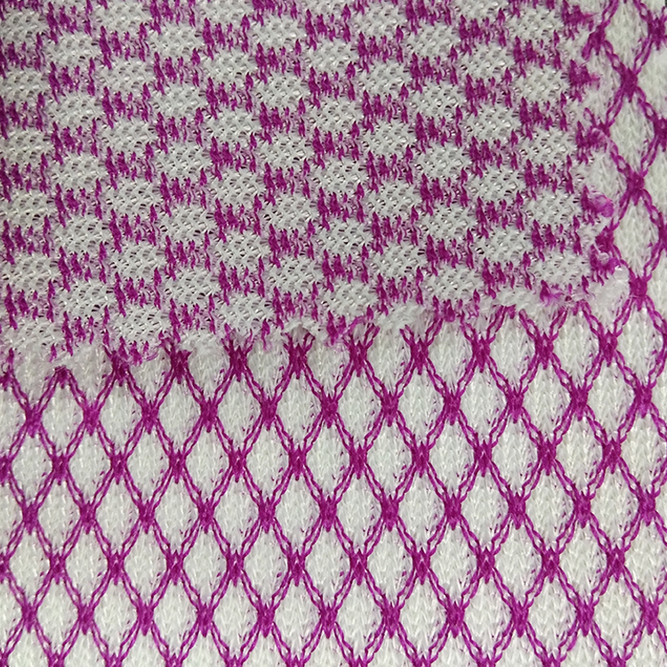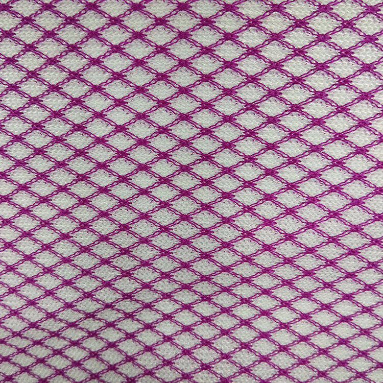 雙色網(wǎng)布,是一種雙針床經(jīng)編網(wǎng)布,由網(wǎng)孔表面,連接單絲,平布底面組成.因其立體網(wǎng)布的結(jié)構(gòu),正反兩面顏色