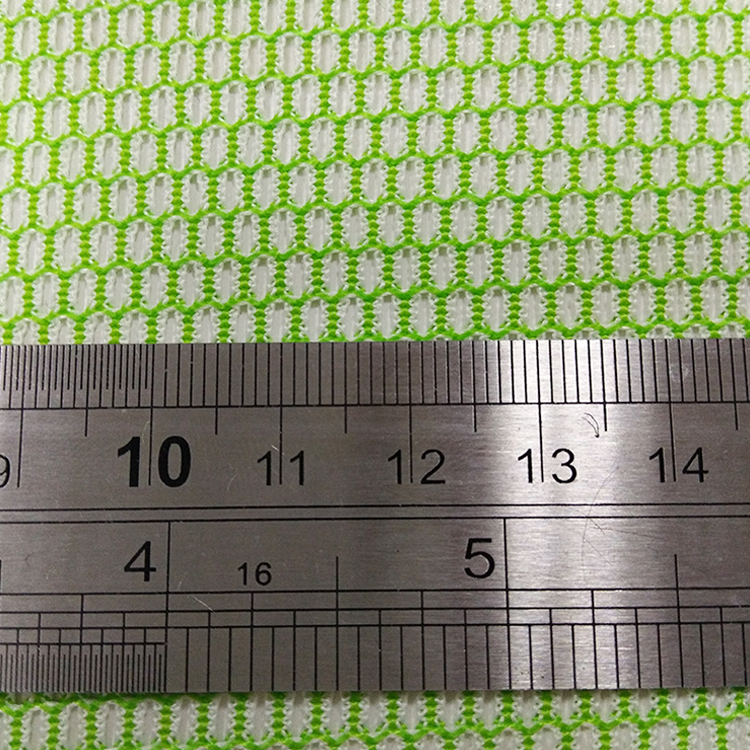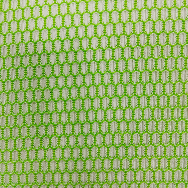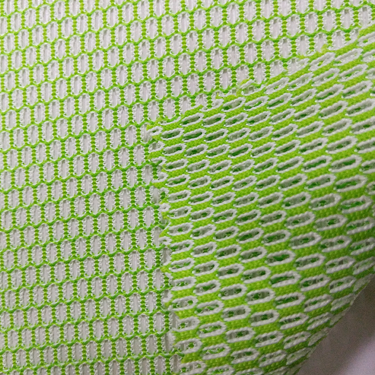 雙色網(wǎng)布,是一種雙針床經(jīng)編網(wǎng)布,由網(wǎng)孔表面,連接單絲,平布底面組成.因其立體網(wǎng)布的結(jié)構(gòu),正反兩面顏色